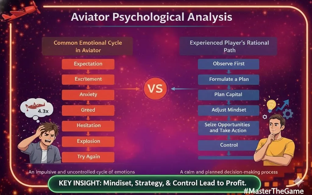 1️⃣ Common psychological cycles when first playing Aviator: Most beginners, when first encountering Aviator, unconsciously fall into the following psychological patterns: